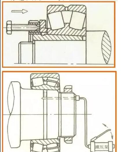 拆卸小型錐孔軸承的方法比較簡單和方便: 拆卸帶緊定套的錐孔軸承,只要將螺母轉(zhuǎn)松幾圈后,使用墊塊用錘子敲打即可拆卸。 直接利用退卸套,靠擰緊螺母來拆卸錐孔軸承。