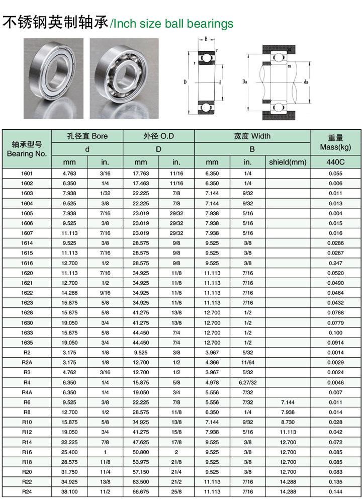 不銹鋼英制非標深溝球軸承型號尺寸規(guī)格參數(shù)大全