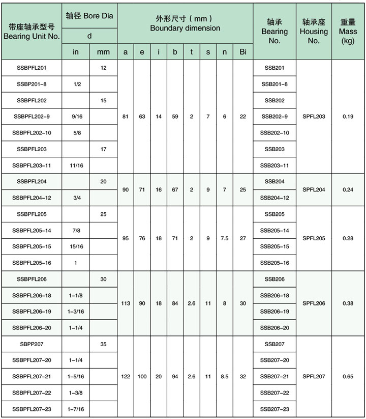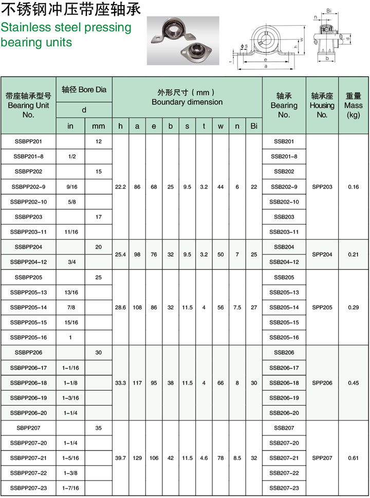 不銹鋼沖壓帶座外球面軸承型號尺寸規(guī)格參數(shù)大全